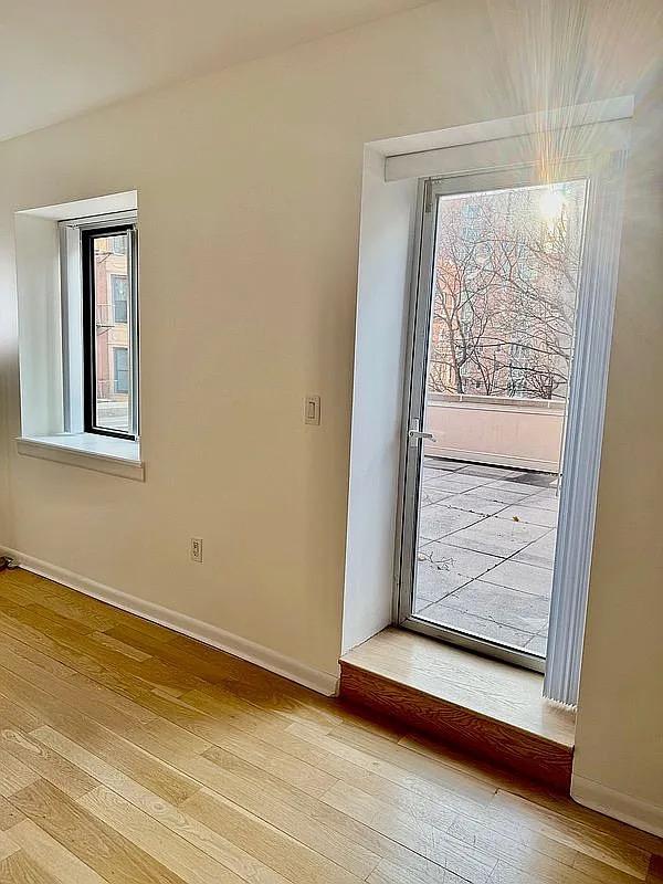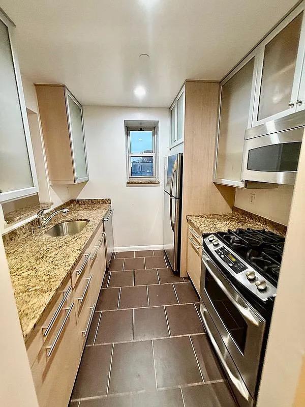 Bright One-Bedroom with Large Private Terrace in Boutique Condo with 421a Tax Abatement. Welcome to Residence 3C at 2279 3rd Avenue — a beautifully maintained, move-in-ready one-bedroom, one-bathroom home at The Bridges NYC Condominiums in East Harlem. 757 SQFT Interior & 300 SQFT Private Terrace. There’s a certain sense of calm greets you the moment you step inside Residence 3C. With a private outdoor space and a thoughtful layout, this home offers a peaceful retreat from the energy of New York City. Northern and eastern exposures fill the apartment with natural light throughout the day, highlighting the oak floors and creating a warm, inviting ambiance. The spacious living area flows seamlessly to a large private terrace equipped with power and water — perfect for morning coffee, evening wine, working from home, or entertaining, with room for both seating and dining. The modern kitchen features custom white oak natural-finish cabinetry with frosted glass fronts, granite countertops, contemporary hardware, and a convenient pass-through window that opens to the living space and terrace. A generous entry hallway includes a large closet with custom cabinetry for excellent storage and organization. The bedroom is a true retreat, offering a large window, oversized casement windows with recently updated custom blackout blinds, and a spacious closet designed for efficient storage. The spa-like bathroom showcases neutral tones, imported porcelain tile, a marble-top vanity, and a sleek modern style. Additional conveniences include through-wall air conditioning and a full-size washer and dryer (W/D). The sellers’ upcoming work relocation creates an exceptional opportunity for a buyer. Building Features: Boutique, pet-friendly elevator condominium with a 24-hour virtual doorman and secure package room. The building benefits from a 421a tax abatement through 2033, low common charges, and low monthly costs — ideal for first-time buyers or investors seeking long-term value. Prime Location: Minutes from the 4/5/6 subway lines, Harlem River Greenway, Mount Sinai, the East River Shopping Plaza, and East Harlem’s expanding dining scene. Express trains reach Grand Central and Midtown in approximately 15 minutes. Upcoming Q Subway expansion at 125 and Lexington Ave. Minutes away from the FDR drive.